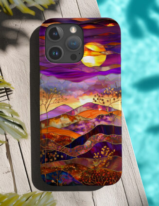 Stained Glass Sunset iPhone Case – Dreamy Gold Purple Hills